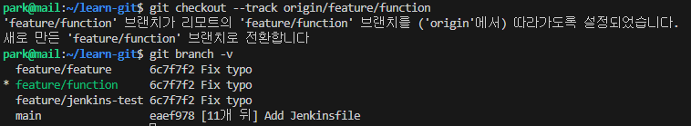 git checkout --track [저장소 이름]/[브랜치 이름]