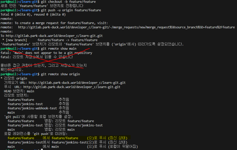 git checkout -b [(로컬) 새 브랜치 이름] [저장소 이름]/[브랜치 이름]