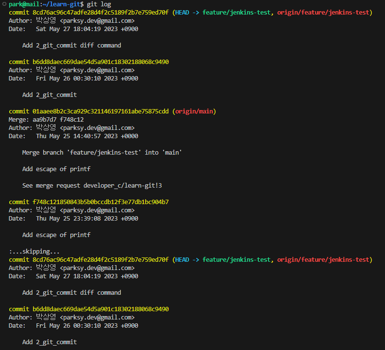 (push를 하고 싶으면 강제 푸시를 해야 하니 git pull 또는 이력을 보고 또 보고 push 할 것)